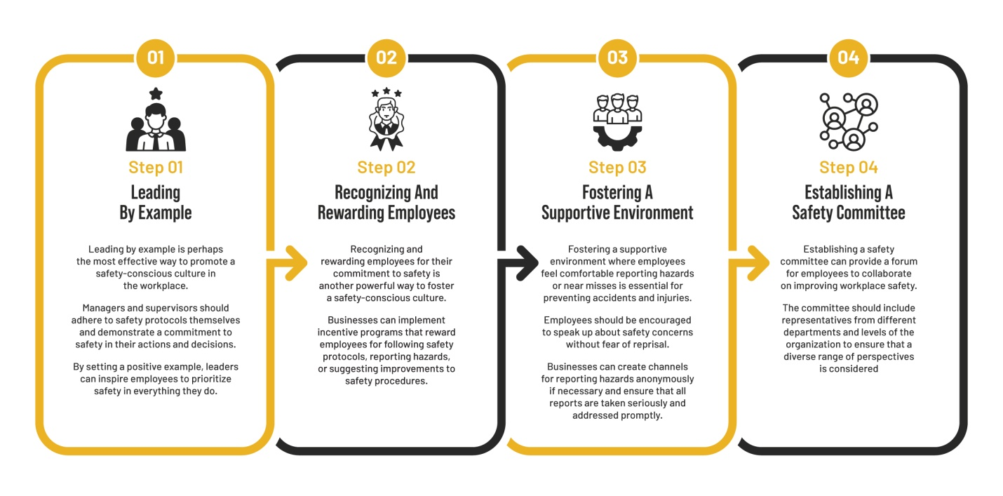 Creating a culture of safety in the workplace requires a multifaceted approach that encompasses training, equipment maintenance, communication, and ergonomic design.
